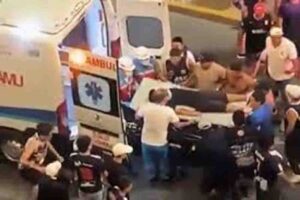 नई दिल्ली फुटबॉल डर्बी से पहले एक रैली के दौरान राजधानी पेरू के एलेजांद्रो विलानेवा स्टेडियम में हुई एक घटना...