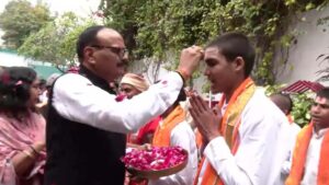 वाराणसी प्रदेश के उप मुख्यमंत्री ब्रजेश पाठक द्वारा 101 बटुकों को घर पर बुलाकर अंगवस्त्रम और तिलक लगाकर पैर छूकर...