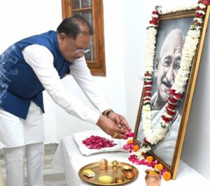 मुख्यमंत्री विष्णु देव साय ने महात्मा गांधी की पुण्यतिथि पर उन्हें किया नमन