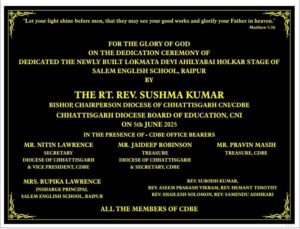 रायपुर सलेम इंग्लिश स्कूल, रायपुर में दिनांक 5 जून 2025 को एक ऐतिहासिक और गौरवपूर्ण क्षण का साक्षी बना, जब...