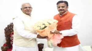 भोपाल राज्यपाल मंगुभाई पटेल से उप-मुख्यमंत्री राजेन्द्र शुक्ल ने मंगलवार को राजभवन में सौजन्य भेंट की। राज्यपाल पटेल का उप...