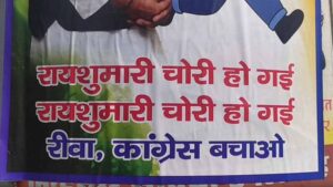 रीवा कांग्रेस नेता राहुल गांधी द्वारा लगाए जा रहे वोट चोरी के आरोपों के बाद रीवा में लगे उनके पोस्टरों...