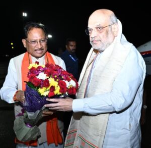 केंद्रीय गृह मंत्री श्री अमित शाह का मुख्यमंत्री श्री विष्णुदेव साय ने स्वामी विवेकानंद विमानतल पर किया आत्मीय स्वागत
