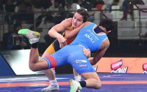 नोएडा महाराष्ट्र केसरी की मनीषा भानवाला को दिल्ली दंगल वॉरियर्स के खिलाफ प्रो रेसलिंग लीग 2026 सेमीफाइनल के दौरान 57...