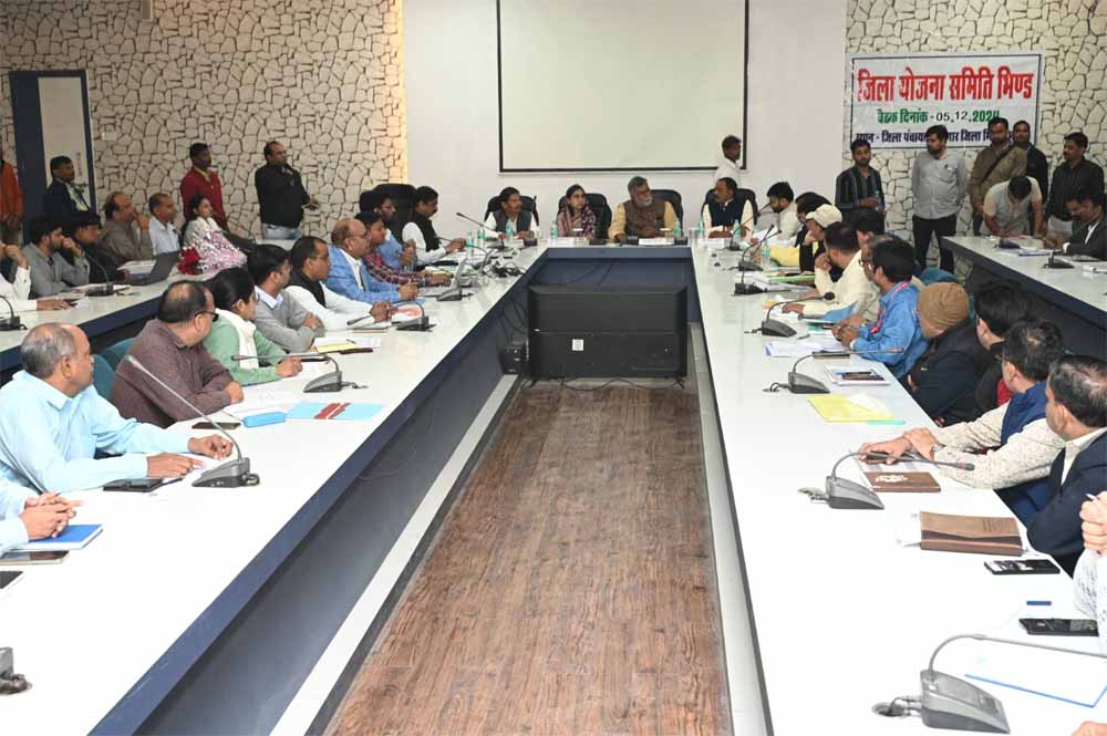 पंचायत एवं ग्रामीण विकास, श्रम और भिण्ड जिले के प्रभारी मंत्री श्री प्रहलाद सिंह पटेल की अध्यक्षता में गुरुवार को जिला योजना समिति की बैठक जिला पंचायत सभागार भिण्ड में की गई। इस दौरान नवीन एवं नवकरणीय ऊर्जा मंत्री श्री राकेश शुक्ला, विधायकगण, जनप्रतिनिधि, कलेक्टर एवं जिला अधिकारी उपस्थित रहे।