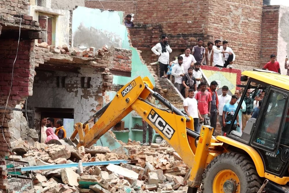 बुलडोजर ऐक्शन के दौरान जुड़ी भारी भीड़