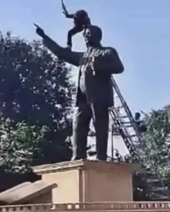 पंजाब के अमृतसर में संविधान निर्माता बाबा साहेब भीमराव आंबेडकर की मूर्ति पर चढ़ हथौड़े से मारने की घटना सामने आई है। इसे लेकर सियासी हंगामा मचा हुआ है। अमृतसर स्थित स्वर्ण मंदिर की ओर जाने वाली हेरिटेज स्ट्रीट पर टाउन हॉल में बीआर आंबेडकर की प्रतिमा को नुकसान पहुंचाया गया। आरोपी को पुलिस ने गिरफ्तार कर लिया है। पुलिस ने बताया कि घटना को लेकर एफआईआर दर्ज करने के बाद आरोपी को अरेस्ट कर लिया गया। आगे की जांच जारी है। इस घटना का वीडियो सोशल मीडिया पर वायरल हो गया, जिसमें व्यक्ति को लंबी स्टील की सीढ़ी का उपयोग करके हथौड़ा लेकर प्रतिमा पर चढ़ते देखा जा सकता है।