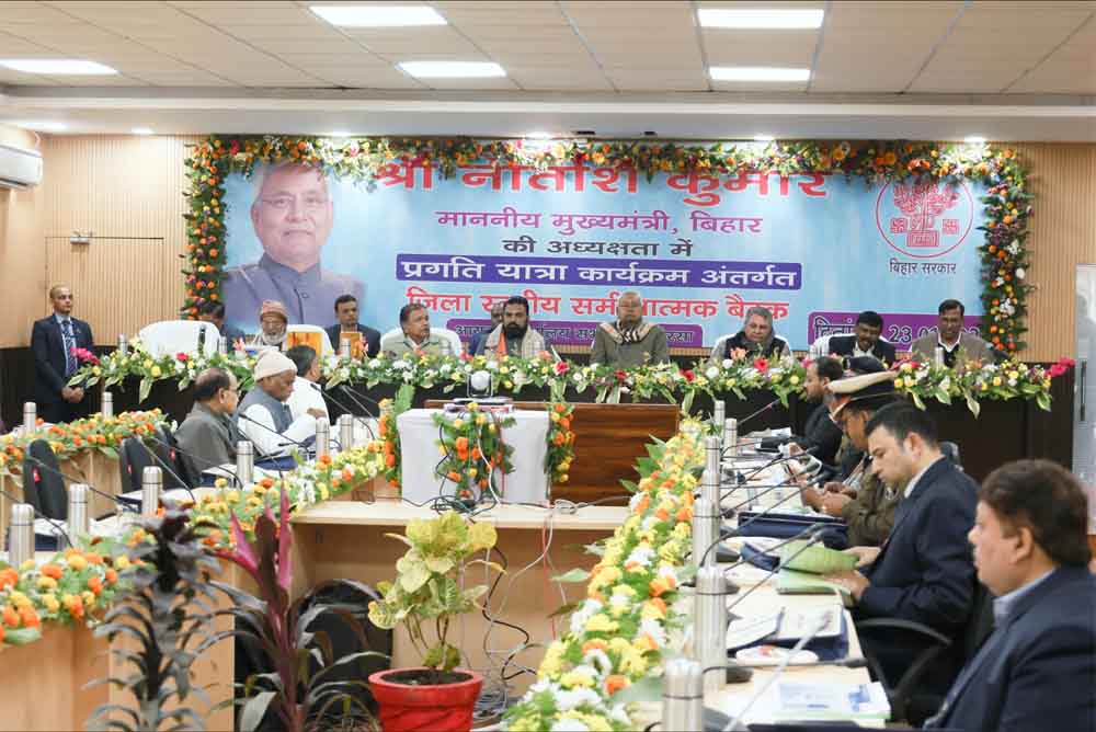 मुख्यमंत्री श्री नीतीश कुमार ने आज प्रगति यात्रा के तीसरे चरण में सहरसा जिले में चल रही विकासात्मक योजनाओं के संबंध मेंप्रमंडलीय सभागार (कोशी प्रमंडल), सहरसा में समीक्षात्मक बैठक की। समीक्षात्मक बैठक में सहरसा के जिलाधिकारी श्री वैभव चौधरी ने जिले के विकासकार्यों का प्रस्तुतीकरण के माध्यम से विस्तृत जानकारी दी।