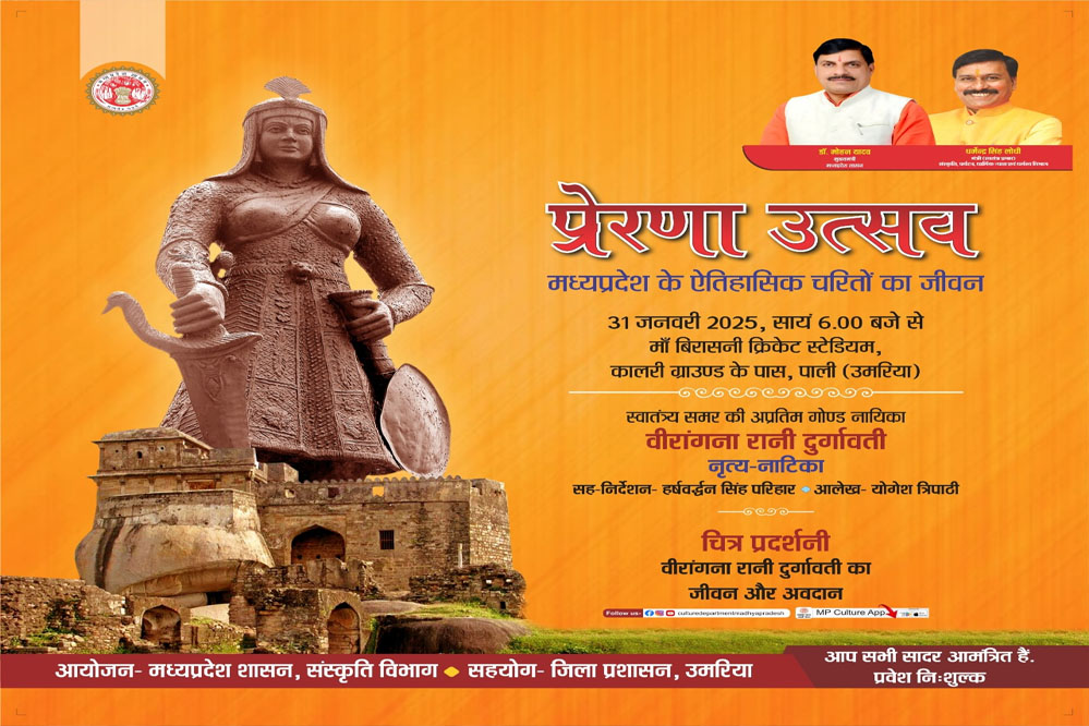 प्रेरणा दिवस मध्यप्रदेश के सांस्कृतिक विभाग के कुशल मार्गदर्शन में जिला प्रशासन के व्दारा आयोजित किया जाएगा।