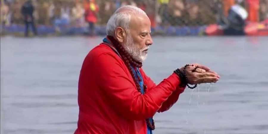 प्रधानमंत्री नरेंद्र मोदी ने संगम में लगाई आस्था की डुबकी