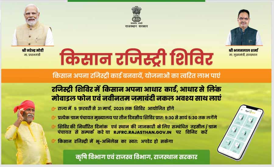 जयपुर जिले में बुधवार को होगा किसान रजिस्ट्री शिविरों का आगाज, हर किसान को मिलेगी 11 अंकों की एक विशिष्ट पहचान