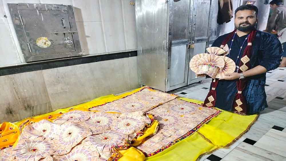 राजस्थान के भक्त ने की डोनेशन, बांके बिहारी मंदिर में 200 रुपये के नोटों से बनी ड्रेस चढ़ाई