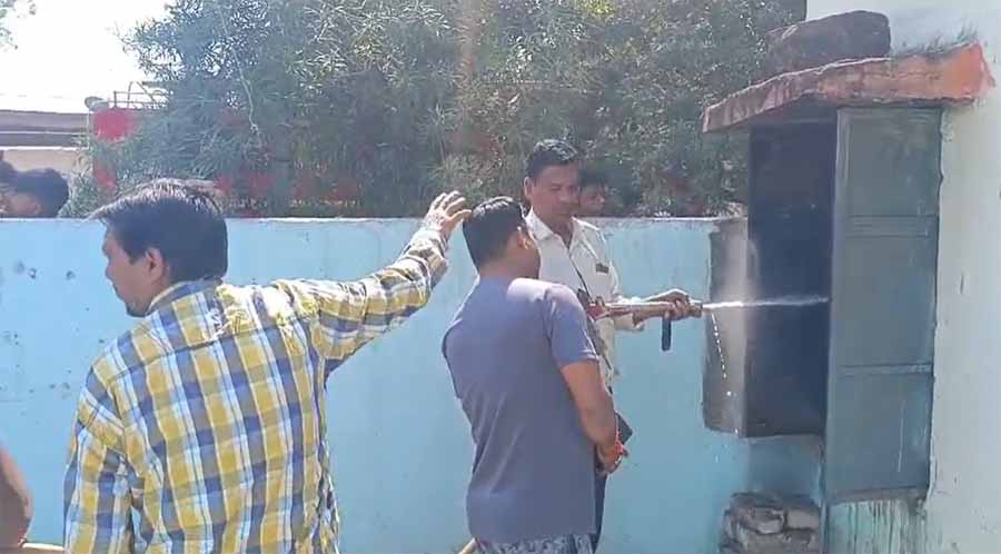 जानकारी के मुताबिक, सूने मकान में बदमाश बीती रात चोरी करने के लिए घुसे. हाथ साफ करने के बाद चोरों ने घर में रखे सामानों को आग के हवाले कर दिया. घटना की जानकारी सबसे पहले पड़ोसियों को आज सुबह लगी. स्थानीय लोगों ने देखा कि घर के अंदर से आग की लपटे और धुंआ निकल रहा है. तत्काल सूचना देने के बाद दमकल वाहन ने मौके पर पहुंचकर आग बुझाई.