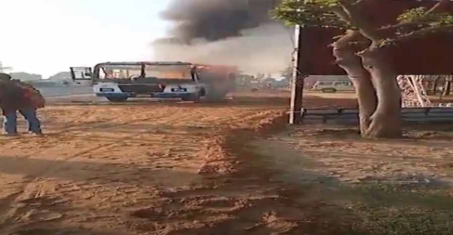 जयपुर से खाटू श्याम जी जा रही यात्रियों से भरी बस में अचानक लगी भीषण आग, लोगों ने कूदकर बचाई जान