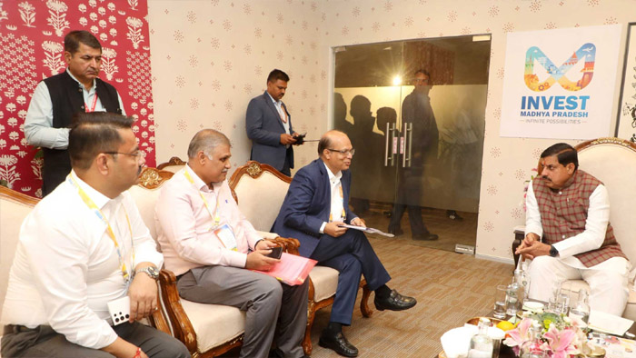 मुख्यमंत्री डॉ. यादव से विश्वकर्मा ग्रुप विश्वविद्यालय पुणे के एमडी डॉ. भरत अग्रवाल ने शिक्षा, गोल्डक्रेस्ट सीमेंट के एमडी आर. एस. जोशी ने सीमेंट, अल्फाविजन ओवर्सीस के चेयरमेन आर. के. गोयल ने हॉस्पिटेलिटी, एकमे ग्रुप के सीईओ निखिल ढिंगरा ने रिन्यूएबल एनर्जी, रूसान फार्मा के डायरेक्टर डॉ. राजेश हजेला ने फार्मास्युटिकल सेक्टर पर मध्यप्रदेश में निवेश को लेकर वन टू वन चर्चा की।