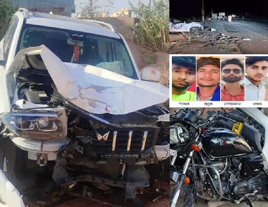 बीकानेर : तेज रफ्तार स्कॉर्पियो की टक्कर से चार युवकों की मौत