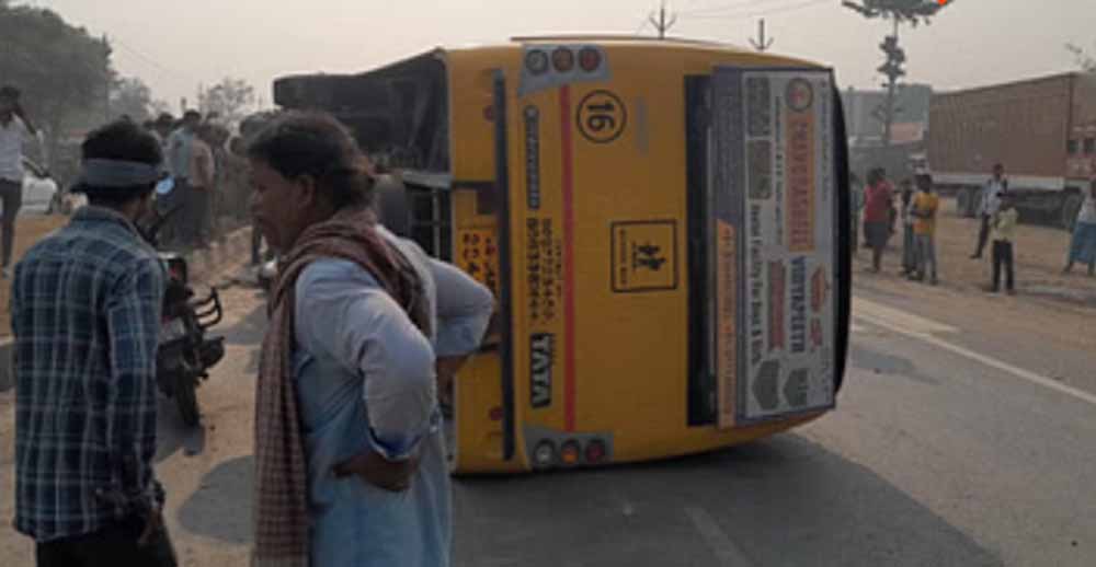 मुजफ्फरपुर में तेज रफ्तार स्कूली बस पलटी