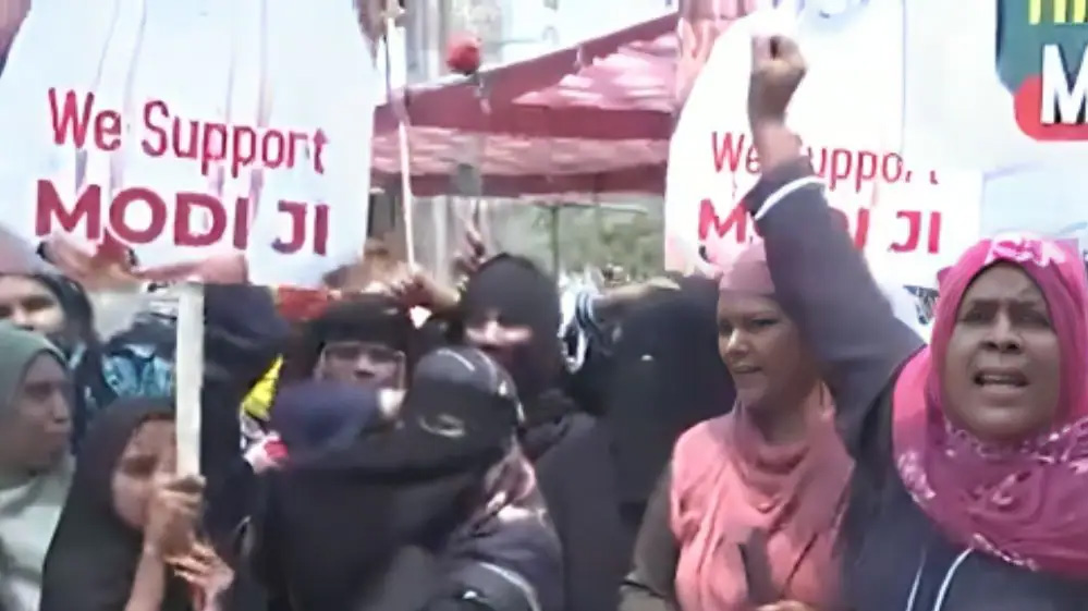 वक्फ बिल के पक्ष में बुर्का पहनकर सड़क पर उतरीं मुस्लिम महिलाएं, ‘शुक्रिया मोदी जी’ के पोस्टर लहराए