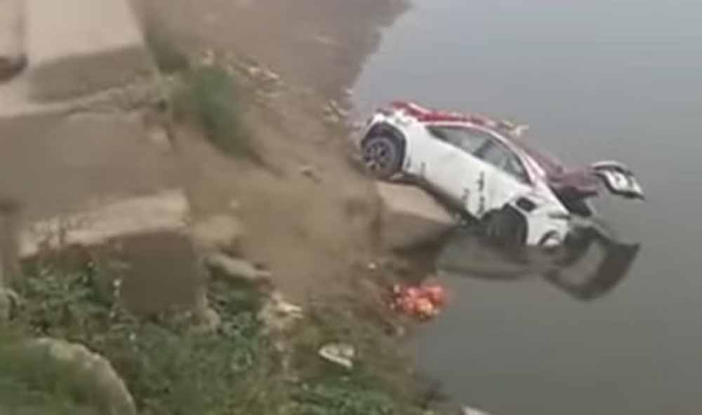 पुल से गिरी दूल्हे की गाड़ी, बाल-बाल बची पांच लोगों की जान