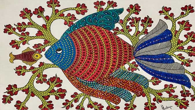 पाटनगढ़ की गोंड आदिवसी चित्रकला, कला का ऐसा रूप से जो स्थानीय गोंड जनजाति द्वारा 1400 वर्षों से अधिक समय से सहेजी गई है। यह कला प्रकृति और संस्कृति के बीच गहरे संबंधों को दर्शाती है। दीवार के भित्त चित्र हों या जीवन शैली के उत्पाद, इन सभी को जीवंत रंगों, जटिल रचनाओं और मनमोहक अभिव्यक्ति के माध्यम से तैयार किया जाता है। चूंकि यह समुदाय प्रकृति के साथ गहराई से जुड़ा हुआ है, इसलिए उनसे प्रेरणा लेकर वे इसे चित्रकला में प्रदर्शित भी करते हैं। परंपरागत रूप से यह कला एक पीढ़ी से दूसरी पीढ़ी में पहुंचती हैं। इन चित्रकलाओं में जहां पेड़–पौधों को कैनवास पर उकेरा जाता है वहीं पशुओं के साथ–साथ आकाश, सूर्य, चंद्रमा आदि का भी सुंदर चित्रण देखने को मिलता है। आकार और प्रयोग में लाई गई जटिलताओं के आधार पर इन्हें बनाने में 2 दिन से लेकर 2 महीने तक का समय लगता है। कई बार बड़ी कलाकृतियों को समूहों में तैयार किया जाता है।