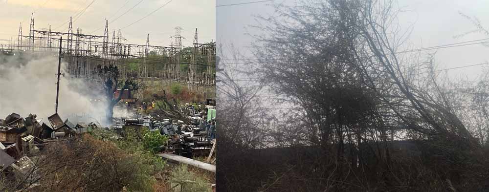 भिलाई में आंधी से बिजली कंपनी के कबाड़ में लगी आग, रेलवे क्रॉसिंग के पास पेड़ गिरने से रेल यातायात प्रभावित