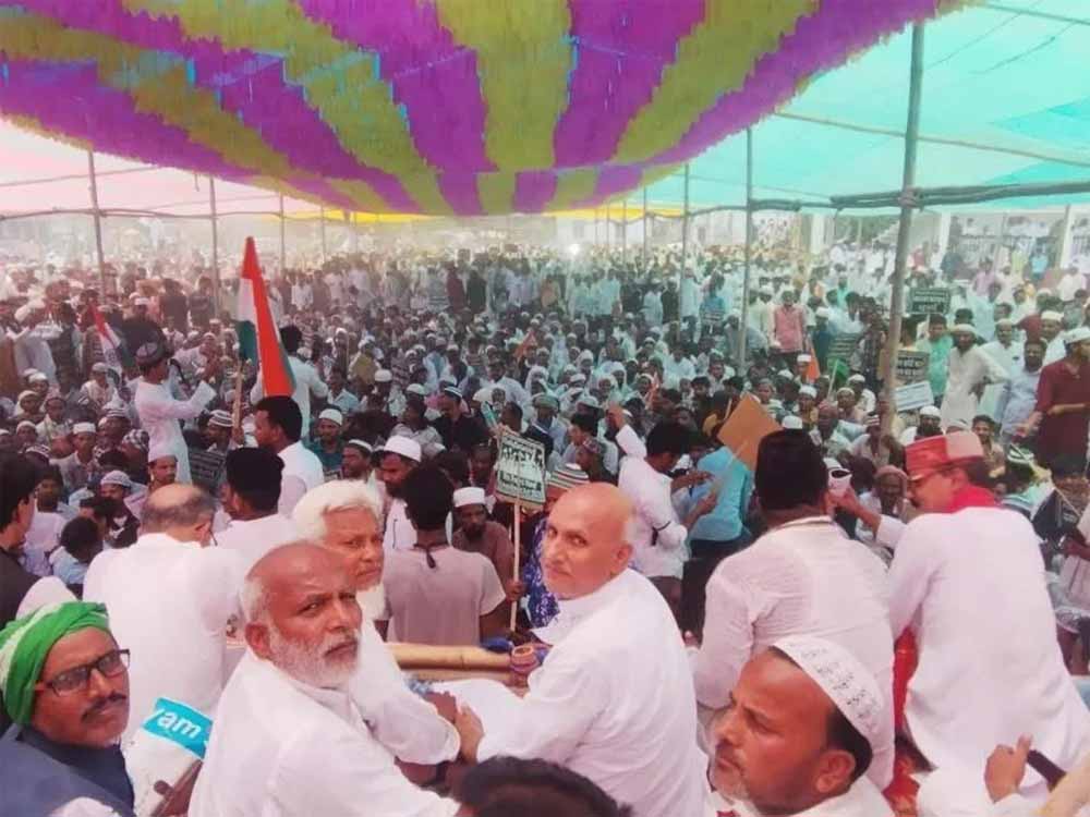 वक्फ कानून के खिलाफ आयोजित सभा, मंच पर काफी लोगों के जमा होने के कारण टूटा मंच