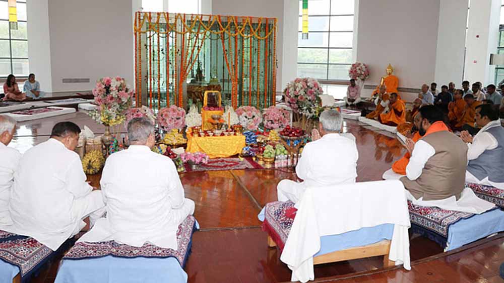 बुद्ध स्मृति पार्क में मुख्यमंत्री नीतीश ने भगवान बुद्ध की पूजा की