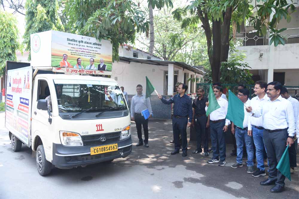 कलेक्टर संजय अग्रवाल ने विकसित कृषि संकल्प अभियान के प्रचार के लिए विशेष रूप से सुसज्जित वाहनों को हरी झंडी दिखाकर रवाना किया। ये अभियान आज 29 मई से शुरू हुआ है, जो कि 12 जून तक चलेगा। केंद्रीय कृषि मंत्रालय नई दिल्लीऔर राज्य सरकार के कृषि विभाग द्वारा मिलकर इस अभियान को चलाया जा रहा है। गांव गांव पहुंचकर वाहन के जरिए किसानों को उन्नत और जैविक खेती के बारे में जागरूक किया जाएगा। कृषि वैज्ञानिक इस दौरान किसानों से सीधा संवाद करेंगे। इस अवसर पर उप संचालक कृषि पीडी हथेस्वर, उप संचालक मछलीपालन श्री महीश्वर , केवीके के वैज्ञानिक अरुण त्रिपाठी, उप संचालक उद्यान श्री लौतरे आदि अधिकारी उपस्थित थे।