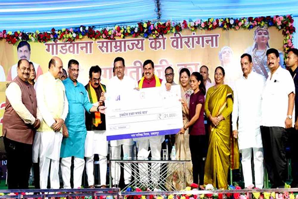 उन्होंने वीरांगनाओं को याद करते हुए कहा कि इस क्षेत्र में रानी अवंतीबाई व रानी लक्ष्मीबाई की शौर्य व पराक्रम की अद्भुत गाथा है। वर्तमान समय में आदिवासी अंचल की बहन राष्ट्रपति पद को गौरवांवित कर रही है। मुख्यमंत्री डॉ. यादव ने कहा कि परिसीमन के बाद विधानसभा चुनाव में बहनों को भी 33 प्रतिशत आरक्षण देने की भावना है। मुख्यमंत्री डॉ. यादव ने कार्यक्रम के दौरान रानी दुर्गावती मैराथन दौड़ प्रतियोगिता में प्रथम, द्वितीय एवं तृतीय स्थान प्राप्त करने वाले धावकों को चेक एवं प्रशस्ति पत्र प्रदान किए।