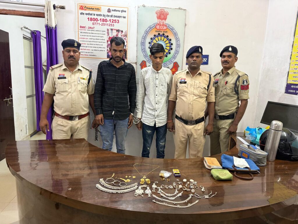 उक्त प्राप्त जानकारी के आधार पर टीम को बिलासपुर भेजा गया। जहां *रितेश पाण्डे एवं सोहन पटेल को पकड़कर पूछताछ करने पर बताए कि घटना दिनांक को रात को वे अपने साथी लक्की यादव, तोरवा बिलासपुर के साथ घटनास्थल पर आकर रॉड से मकान का ताला तोड़कर मकान के अंदर घुसकर सोने चांदी के जेवर आदि चोरी किए* और चोरी का सामान में से *संतोषी गोस्वामी के माध्यम से सुखनंदन सोनी निवासी सिरगिट्टी को गुलबंद बेचे हैं, शेष सामान रितेश अपने पिता विनय पाण्डे और सोहन पटेल ने अपने रिश्तेदार रमेश पटेल को छिपाकर रखने दिया है।* आरोपियों की निशानदेही पर *सोने के जेवर 51 ग्राम, 430 मि.ग्रा. कीमती 3,56,000/- रूपये, चांदी के जेवर 466 ग्राम कीमती 2,30,000/- रूपये एवं बुलेट मोटर सायकल 1,50,000/- रूपये कुल कीमती 7,36,000/- रूपये जप्त किया गया है।