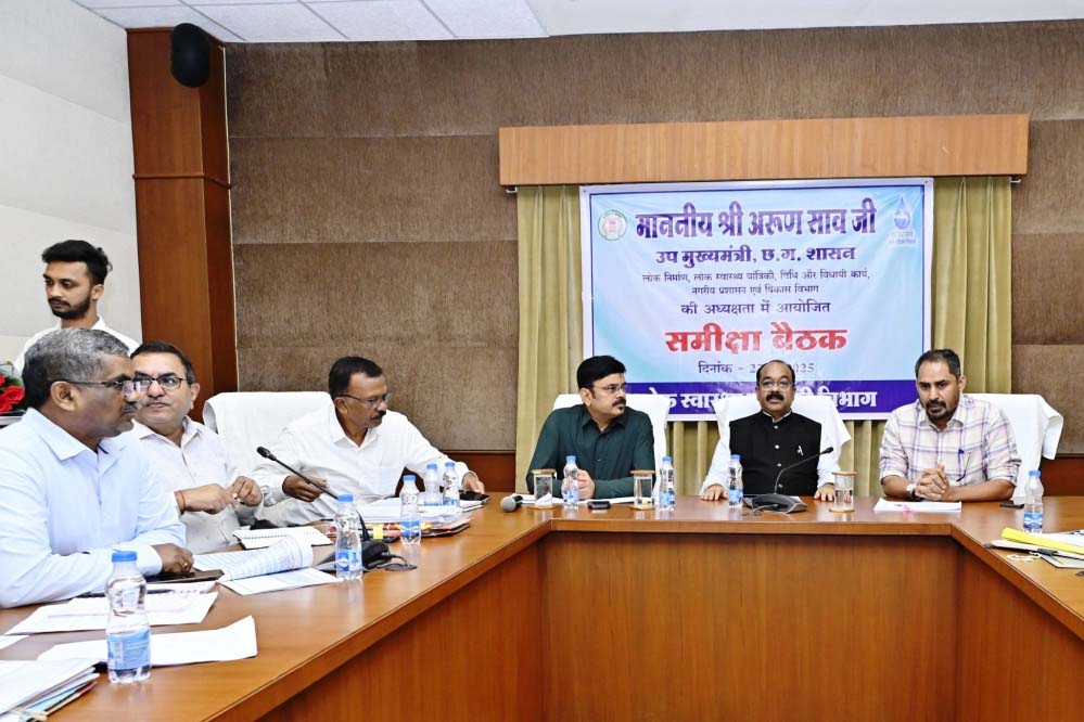 उप मुख्यमंत्री तथा लोक स्वास्थ्य यांत्रिकी मंत्री अरुण साव ने वरिष्ठ विभागीय अधिकारियों की बैठक लेकर जल जीवन मिशन के कार्यों की समीक्षा की। उन्होंने नवा रायपुर स्थित विश्राम भवन में आयोजित बैठक में 90 प्रतिशत कार्य पूर्णता वाले नल जल योजनाओं के काम तत्परता से पूर्ण कर जल्द जलापूर्ति शुरू करने के निर्देश दिए। उन्होंने सतही जल पर आधारित कई गांवों के लिए प्रगतिरत समूह जलप्रदाय योजनाओं के काम में तेजी लाने को कहा। उन्होंने जल जीवन मिशन का शत-प्रतिशत लक्ष्य हासिल करने के लिए विभागीय अधिकारियों को टीम वर्क से काम करने के दिए निर्देशित करते हुए गुणवत्ता पर विशेष ध्यान देने को कहा। लोक स्वास्थ्य यांत्रिकी विभाग के सचिव मोहम्मद कैसर अब्दुलहक, जल जीवन मिशन के संचालक जितेन्द्र कुमार शुक्ला और लोक स्वास्थ्य यांत्रिकी विभाग के प्रमुख अभियंता टी. डी. साण्डिल्य भी समीक्षा बैठक में शामिल हुए।