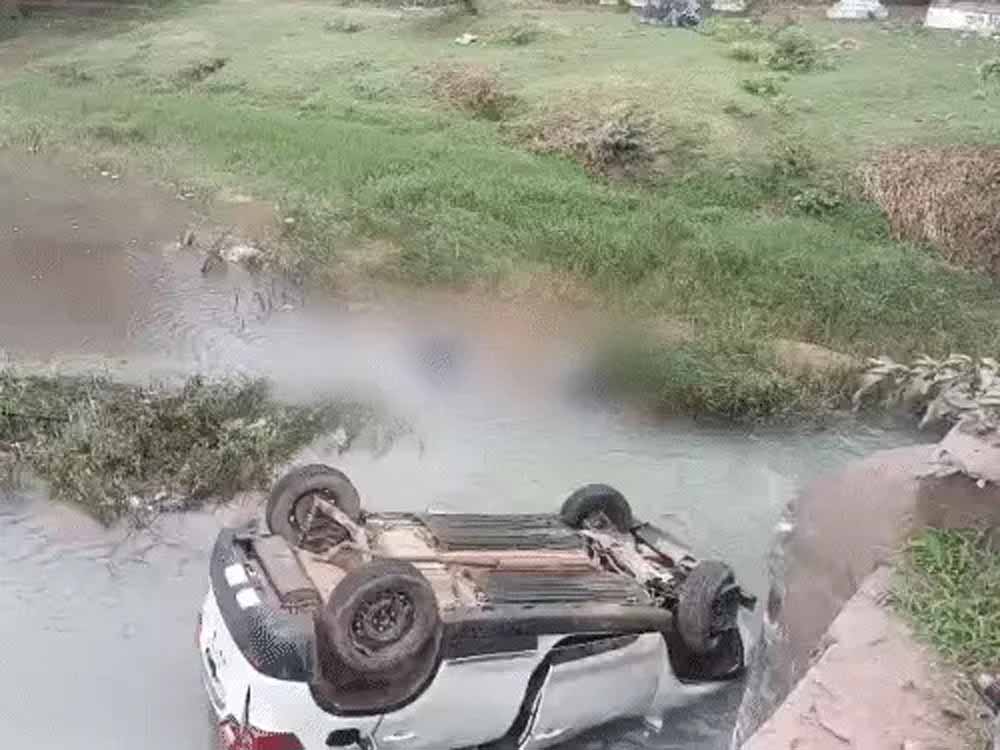 दर्शन को जाते वक्त हादसा: कार पुल से गिरी, भाजयुमो मंडल अध्यक्ष सहित दो की मौत, तीन घायल