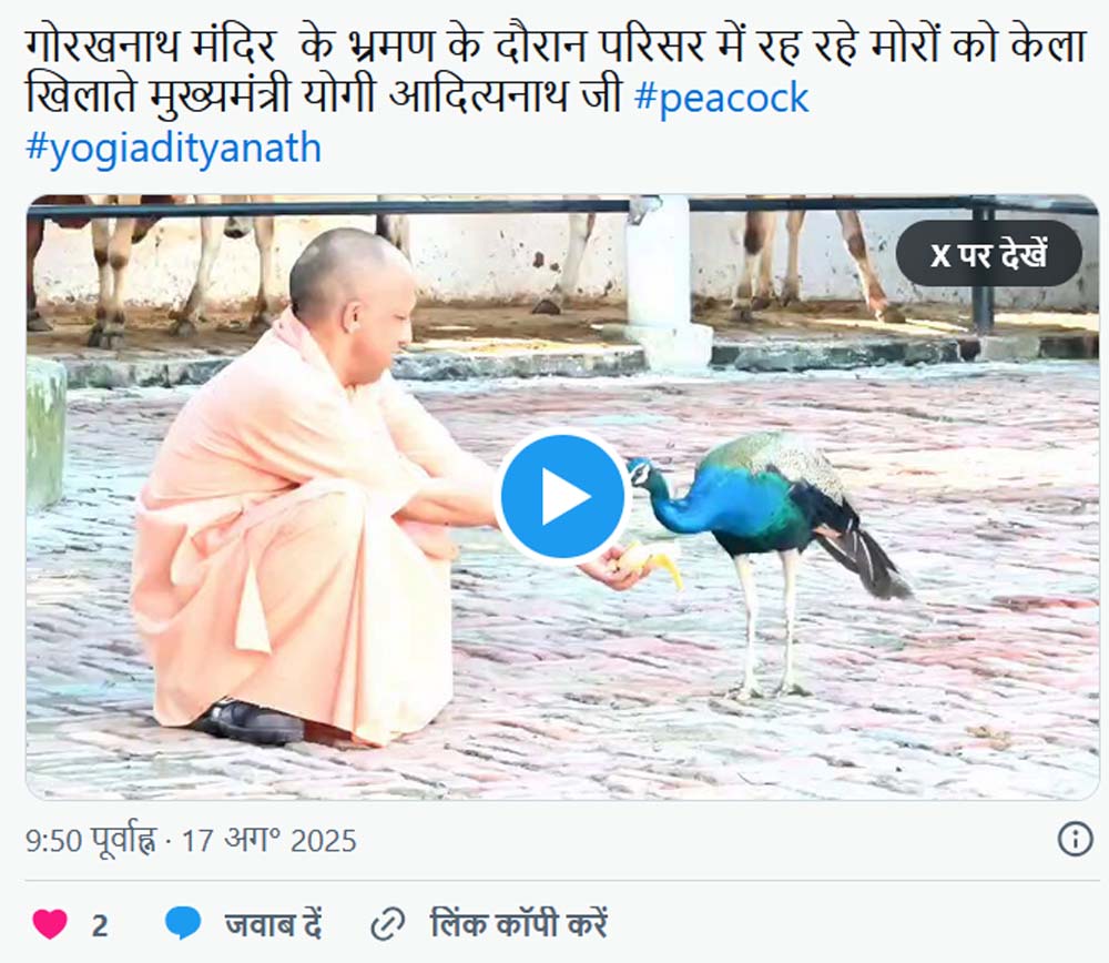 गोरखनाथ मंदिर के दौरे पर मुख्यमंत्री, योगी के हाथों में केला, सामने से दौड़कर आया मोर फिर…