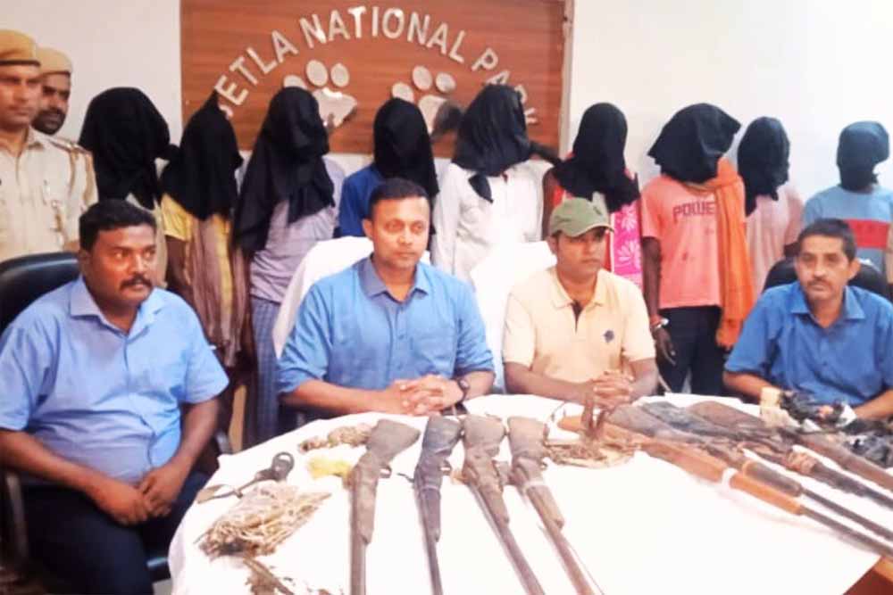 पलामू टाइगर रिज़र्व में बड़ी कार्रवाई: 9 शिकारी गिरफ्तार, हथियार और बारूद बरामद