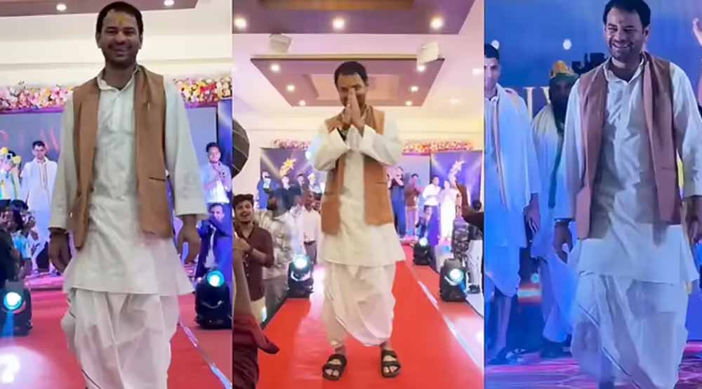 चुनावी रंग में तेज प्रताप का देसी अंदाज, धोती-कुर्ता में रैंप वॉक लुक हुआ वायरल