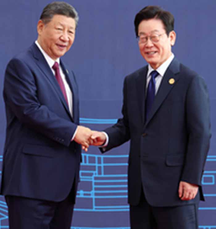 दक्षिण कोरिया के राष्ट्रपति ली जे म्युंग ने शुक्रवार को पहली बार चीनी राष्ट्रपति शी जिनपिंग से मुलाकात की। शी जिनपिंग एशिया-प्रशांत आर्थिक सहयोग (एपेक) शिखर सम्मेलन में भाग लेने के लिए दक्षिण-पूर्वी शहर ग्योंगजू पहुंचे हैं। ली ने ग्योंगजू ह्वाबेक अंतर्राष्ट्रीय सम्मेलन केंद्र में शी के आगमन पर उनका स्वागत किया। जैसे ही चीनी राष्ट्रपति हॉल के प्रवेश द्वार पर ली जे म्युंग के पास पहुंचे, ली ने मुस्कुराते हुए उनका स्वागत किया, संक्षेप में "स्वागत" कहा और फोटो सत्र के लिए हाथ मिलाया। दक्षिण कोरिया के राष्ट्रपति ने शी को हॉल में ले जाते हुए कहा, "मुझे उम्मीद है कि यहां तक आना आपके लिए बहुत असुविधाजनक नहीं रहा होगा।"