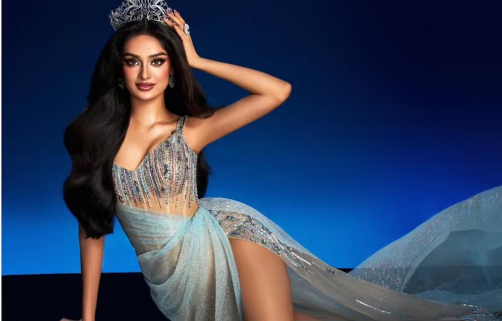 मिस यूनिवर्स में मनिका विश्वकर्मा का इंडो-वेस्टर्न लुक, जालीदार गाउन और मांग टीका बने हाइलाइट