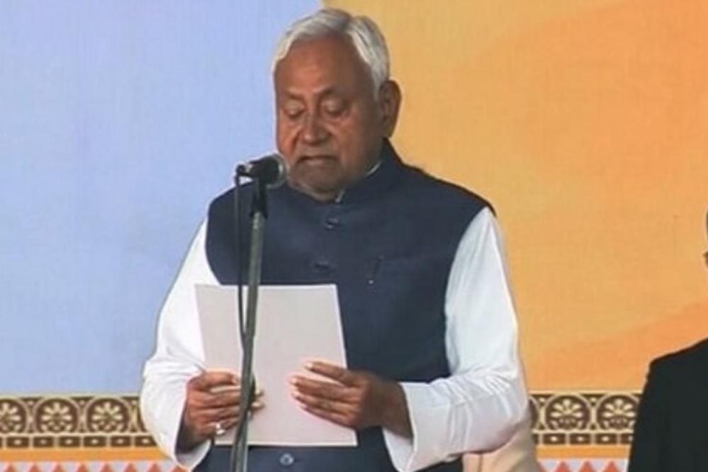 दरअसल, बिहार के राज्यपाल अरिफ मोहम्मद खान ने नीतीश कुमार को मुख्यमंत्री पद एंव गोपनीयता की शपथ दिलाई. नीतीश कुमार ने पद एंव गोपनीयता की शपथ लेते वक्त कहा, ‘मैं नीतीश कुमार… ईश्वर की शपथ लेता हूं कि विधि द्वारा स्थापित भारत के संविधान के प्रति सच्ची श्रद्धा और निष्ठा रखूंगा. मैं मुख्यमंत्री के रूप में अपने कर्तव्यों का श्रद्धापूर्वक और शुद्ध अंत: करण से निर्वहन करूंग तथा मैं भय या पक्षपात, अनुराग या द्वेष के बिना सभी प्रकार के लोगों के प्रति संविधान और विधि के अनुसार न्याय करूंगा.’