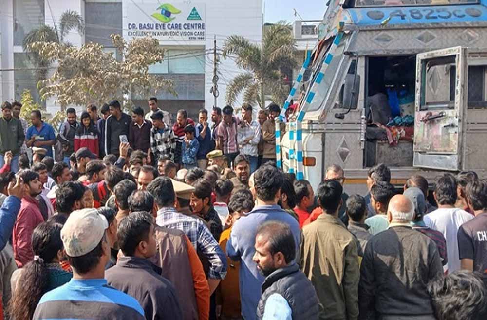 पुलिस अधीक्षक नगर मानुष पारीक ने बताया कि बुधवार को भारी वाहन प्रतिबन्धित क्षेत्र डेलापीर तिराहा, स्टेडियम रोड पर एक ट्रक संख्या ने स्कूटी सवार दंपती को रौंद दिया था, जिसमें महिला की मौके पर हुई मृत्यु हो गयी थी। जबकि स्कूटी चालक बुजुर्ग घायल हो गए थे। इस घटना को वरिष्ठ पुलिस अधीक्षक ने संज्ञान लेते हुए पुलिस अधीक्षक यातायात की रिपोटर् के आधार पर ड्यूटी में लापरवाही बरतने पर तत्काल प्रभाव से चार पुलिस कर्मी को निलम्बन की कार्यवाही करते हुए विभागीय जांच के आदेश दिए हैं।