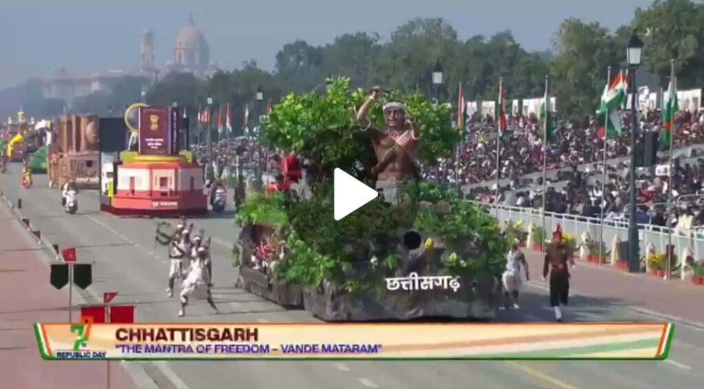 पूरी झांकी जनजातीय समाज के अदम्य साहस, बलिदान और देशभक्ति की भावना को सशक्त रूप में अभिव्यक्त करती रही और गणतंत्र दिवस परेड में छत्तीसगढ़ की गौरवपूर्ण पहचान को राष्ट्रीय मंच पर स्थापित किया।
