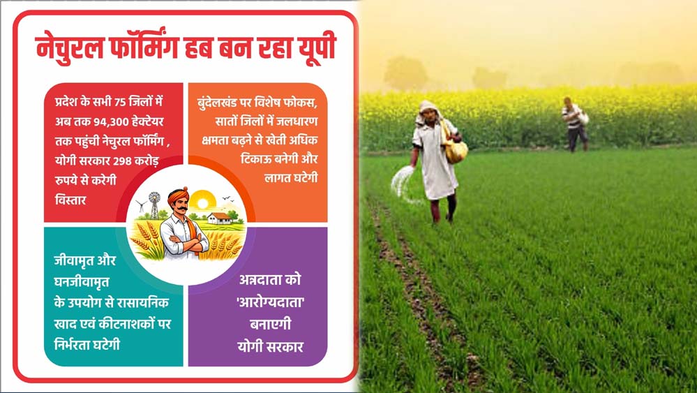 इस व्यापक अभियान में बुंदेलखंड पर फोकस रखा गया है, जहां विशेष कार्यक्रम के जरिए इसे सफल मॉडल के रूप में विकसित किया जा रहा है। योगी सरकार रासायनिक निर्भरता कम कर टिकाऊ कृषि व्यवस्था स्थापित करने के लिए नेचुरल फार्मिंग पर विशेष जोर दे रही है।