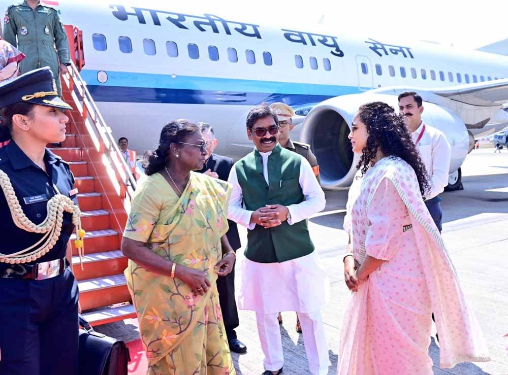 झारखंड पहुँचीं राष्ट्रपति द्रौपदी मुर्मु, राज्यपाल और मुख्यमंत्री हेमंत सोरेन ने किया गरिमामय स्वागत