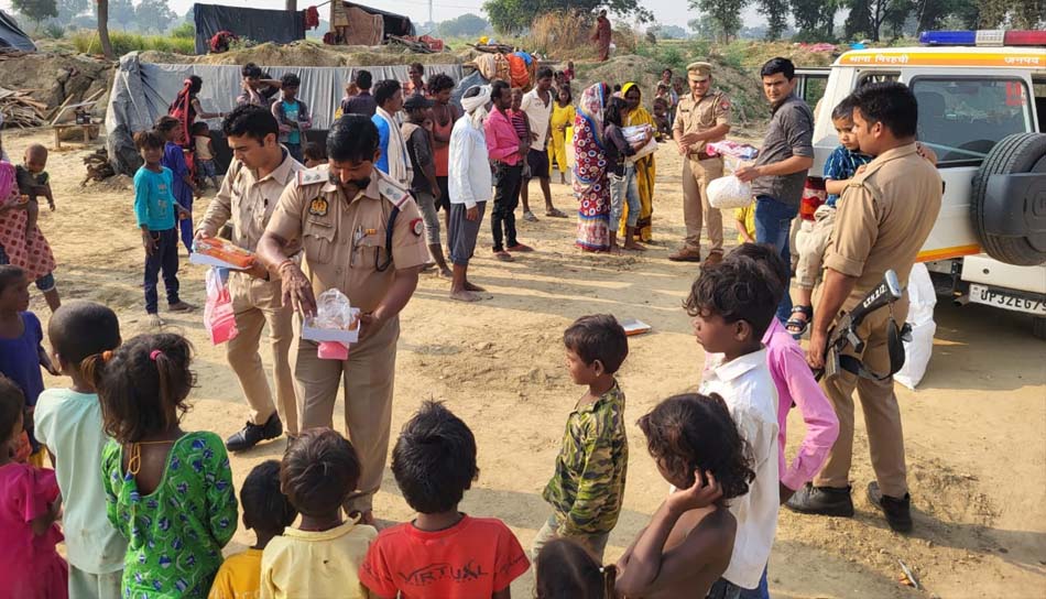 लखनऊ: पुलिस अधिकारियों ने गरीब बच्चों के साथ खेली होली, मासूमों को दिए उपहार