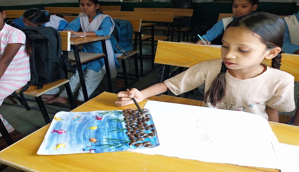 मंजू जायसवाल का कहना है कि, ''पढ़ने में बच्चा कितना भी कमजोर हो लेकिन चित्रों और रंगों के प्रति बच्चों का आकर्षण रहता है. इसलिए जैसे ही हमने यह प्रयोग शुरू किया तो बच्चों ने गणित में भी इंटरेस्ट लेना शुरू कर दिया.हमारी टीम जब स्कूल में पहुंची तो उस समय स्कूल में 15 बच्चे थे. दरअसल अभी नए साल की क्लास शुरू हुई है, इसलिए स्कूल में उपस्थिति की संख्या कम है और ज्यादातर बच्चे नए हैं. लेकिन इसके बावजूद मंजू जायसवाल ने बच्चों को एक चित्र बनाने के लिए कहां और उन्होंने बच्चों से पूल बनवाया.