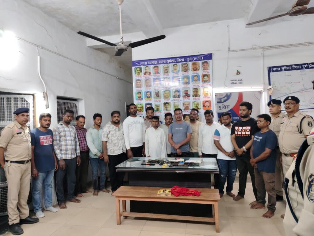 थाना सुपेला क्षेत्र में जुआ खेलते 15 आरोपियों को रंगे हाथ गिरफ्तार कर कुल 1,14,000 रुपये नगद जप्त किया गया